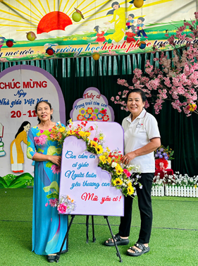 | Cô giáo Nguyễn Thị Điện - Nguyên Hiệu trưởng nhà trường- Cô giáo Nguyễn Thị Điện - Cô giáo Đinh Thị Oanh |